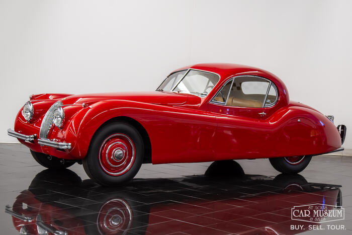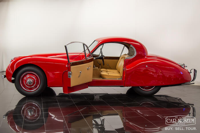 Rotisserie restored 1952 Jaguar XK120 Fixed Head Coupe finished in Bright Red over Biscuit Tan leather interior! Powered by it original, number's matching 3.4L DOHC Inline 6-cylinder engine and head, along with its 4-speed manual gearbox, it comes equipped with traditional “discs and spats” and complementing black wall tires for a superb presentation! The car received a full nut and bolt restoration that quickly earned seven JCNA Concours Driven Division wins and a 100-point score at the Palos Verdes Concours D'Elegance. It is a remarkable example with special attention to detail throughout.