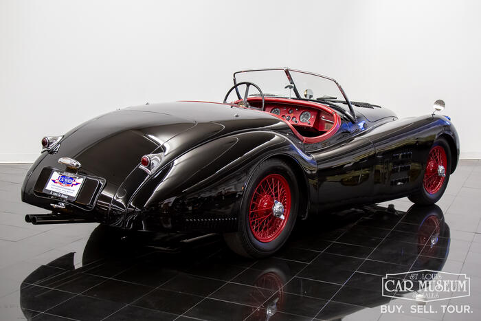 This special XK120 SE has been treated to some race-inspired body modifications that include a beautifully louvered hood, lower front fenders, and behind the wheels on the rear quarters to better direct airflow over and around the car while also helping reduce engine compartment temperature. Having been part of our private collection since 2015, it has always been professionally cared for since arrival. Most recently in November 2019, it had its carburetors rebuilt, new brake master cylinder, front brake drums turned, new wheel cylinders, brake hoses/washers installed along with renewed brake fluid (DOT4). The engine oil/filter are changed annually, with new batteries installed in June 2021 along with a new storage disconnect and battery maintainer included. This Jaguar also comes with a custom fitted cloth tonneau cover. Contact Jon Faust at (314) 993-1330 to schedule a test drive. Vehicle is located at St. Louis Car Museum & Sales.
