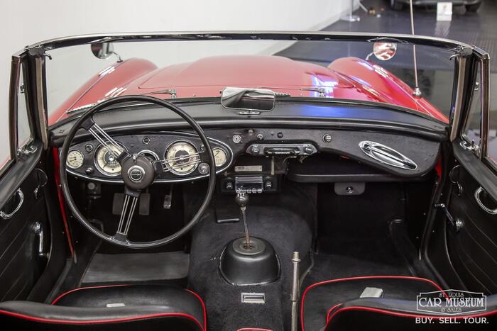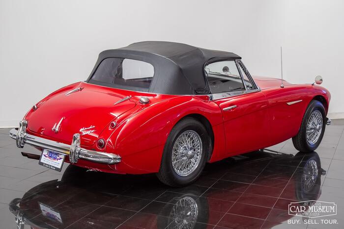 Gorgeous 1963 Austin Healey 3000 Mark II BJ7 Sports Convertible finished in factory correct Colorado Red with upgraded Black trim accented with red seat piping and correct Black convertible top! Powered by a correct 2912cc Inline 6-cylinder engine upgraded with triple SU HS4 carburetion, and 4-speed manual transmission with factory electronic overdrive! It showcases an older but very well maintained 13-year-old restoration today! The chrome and interior upholstery still appear excellent! The convertible top is still new, and the exterior paint finish remains very sharp with only a few minor touch-ups. The engine bay and undercarriage also remain very presentable for a car that continues to be driven and enjoyed. It was recently tuned and is a wonderful performer making it a fun all around cruiser! The current odometer reading is 49,841 miles today. Contact Jon Faust for more info. (800)957-5707, jon@stlouiscarmuseum.com