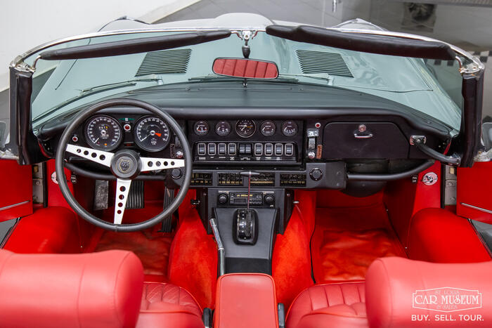 1974 Jaguar XKE Series III Convertible finished in Silver Gray exterior with a Red leather interior. Powering this XKE is its original numbers matching 5.3-liter V12 engine producing a strong and responsive 272 horsepower and is mated to a 3-speed Borg Warner automatic transmission. Showing only 39,979 miles on the odometer, this Jaguar has been well cared for and garage kept. Has copy of original title and owner transfer paperwork, service receipts, 2 parts catalogues, extra key sets, and the maintenance & service manual.